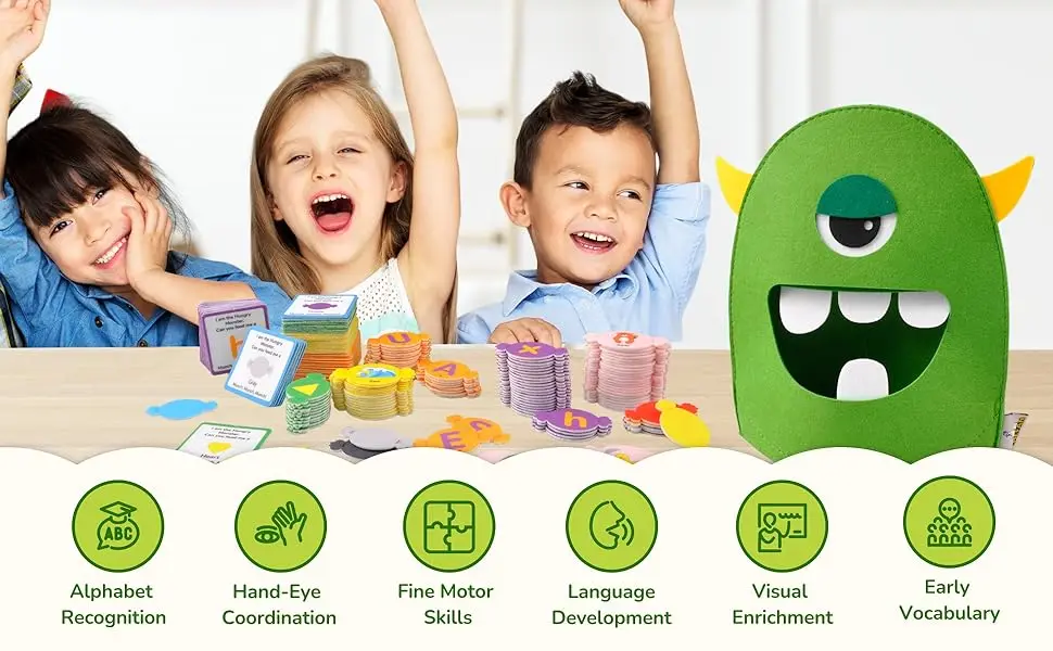 Gift for Preschool Children:This fun game of the little monster eating letter candies is perfect for children to grasp the alphabet and letter pronunciation through hands-on enjoyment. Choose it as a birthday, Halloween, or Christmas gift for children, or take it along on trips and road travels.