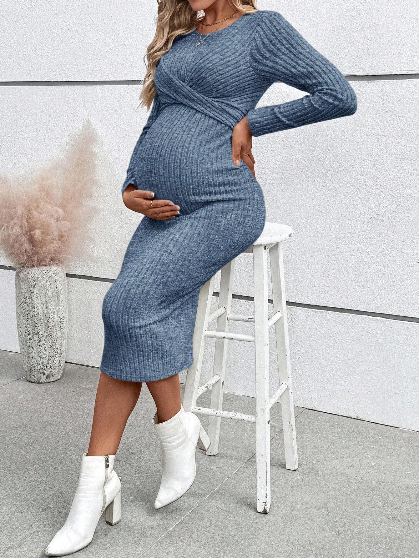 "Embrace your pregnancy in style with our Maternity Long-sleeved Knotted Dress. Feel confident and fierce while staying comfortable with its stretchy fit. Perfect for any occasion, this elegant dress will have you looking and feeling your best throughout your pregnancy."