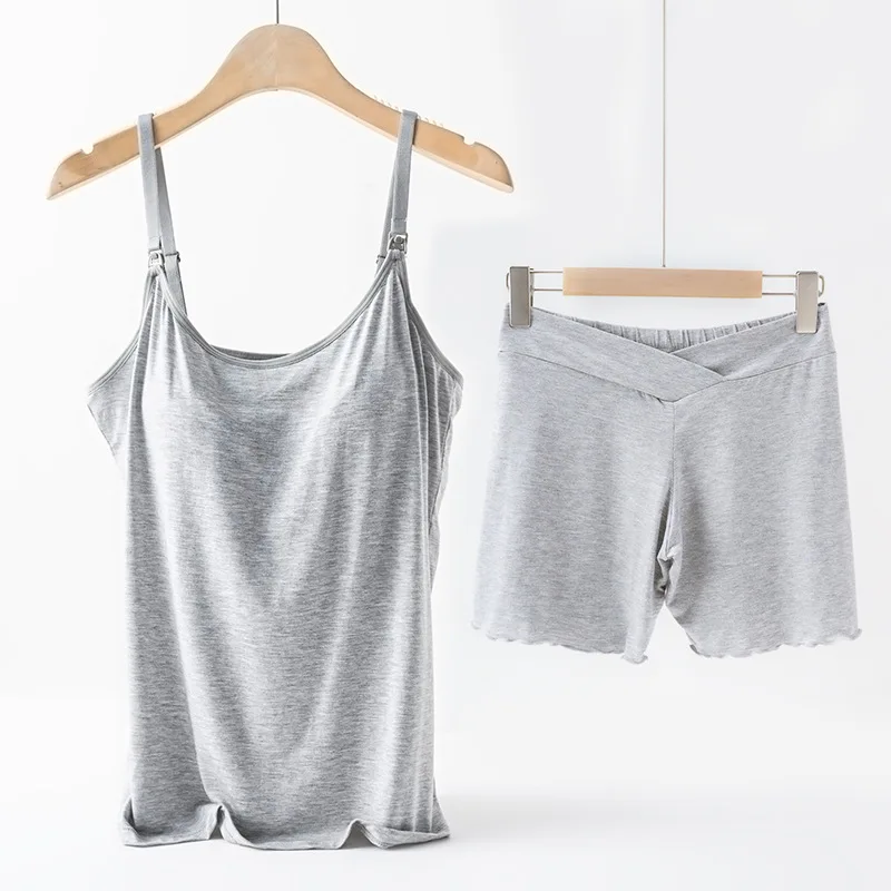 Stay comfortable and stylish with our Sleeveless Women's Maternity Nursing Pajamas 2Pcs/Set. This set features a casual short sleeve breastfeeding maternity dress, perfect for hospital comfort. Take care of yourself while caring for your little one, all with just one outfit.