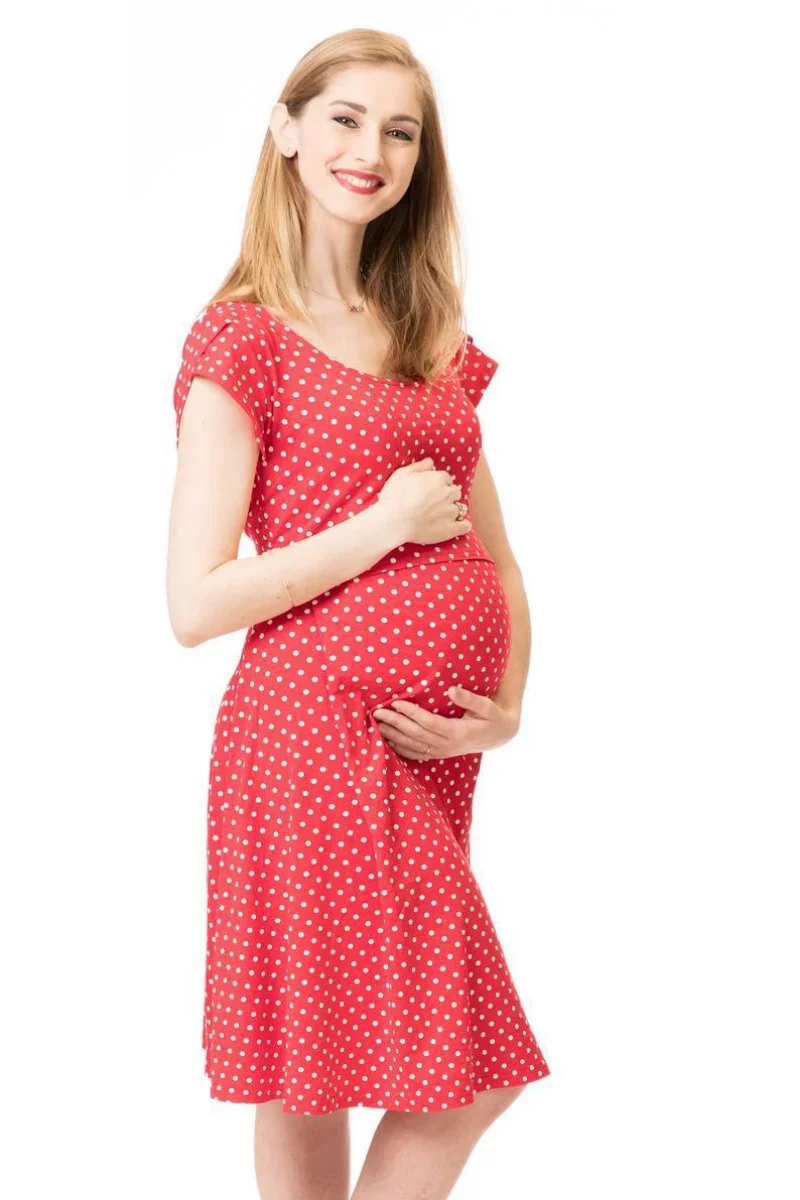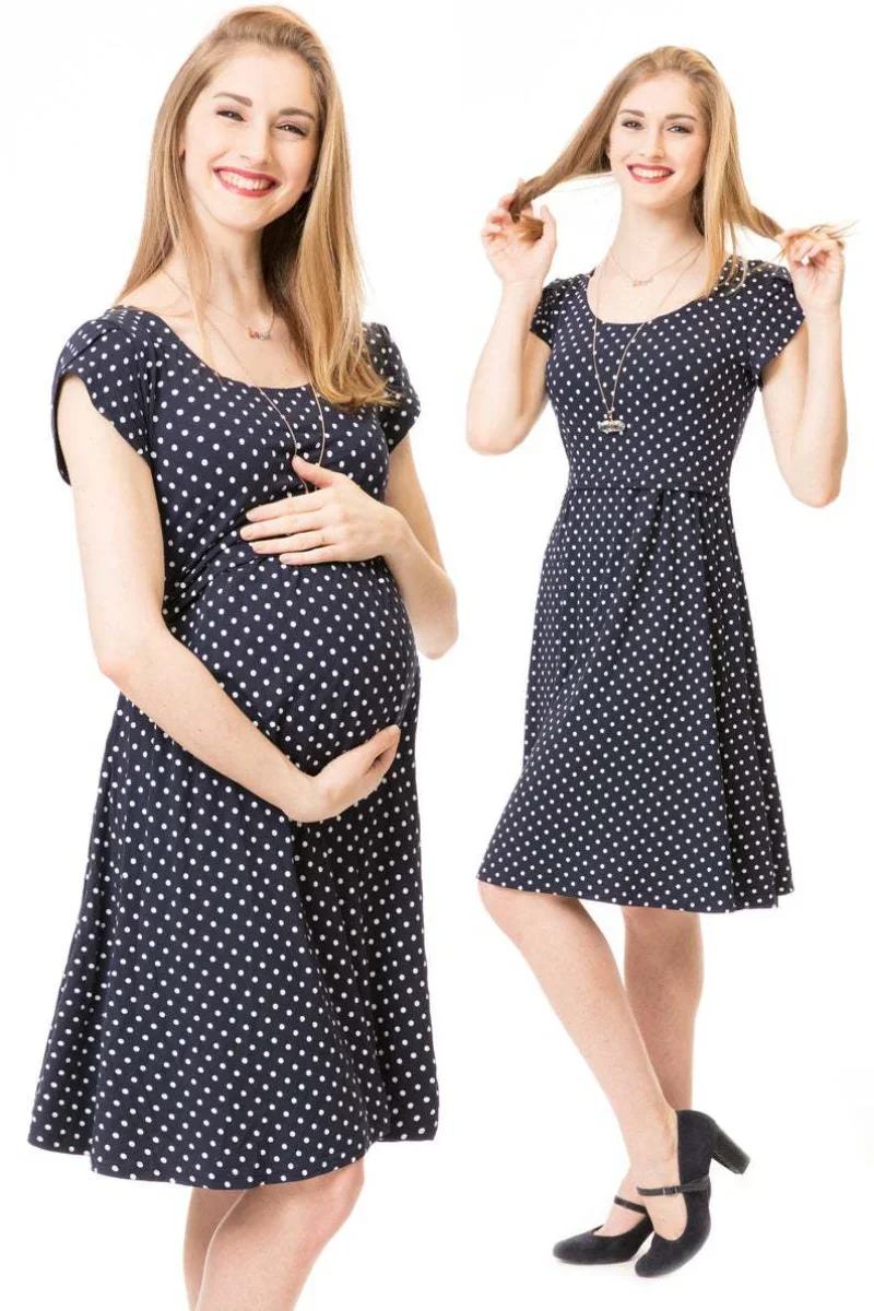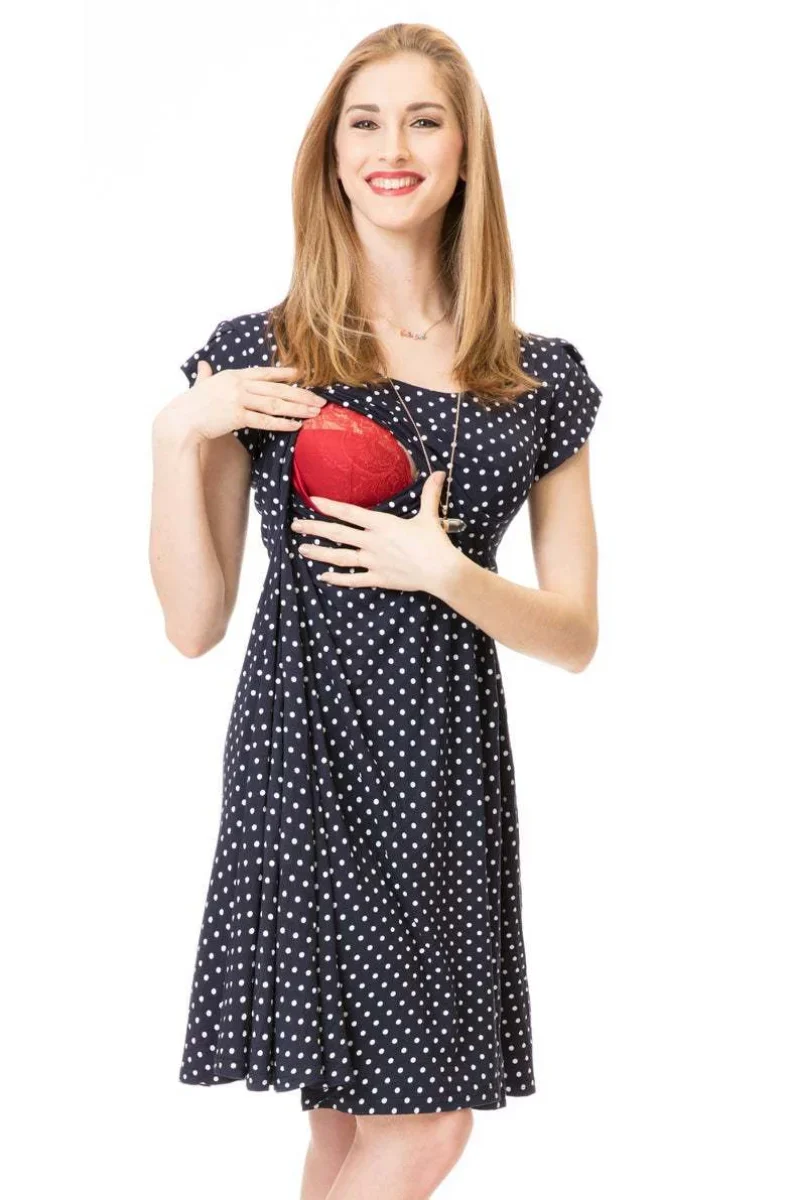 This short-sleeved nursing dress features a cute and fashionable dot print, making it the perfect summer option for social occasions. Made with skin-friendly materials for comfort, it provides both style and convenience for breastfeeding mothers.