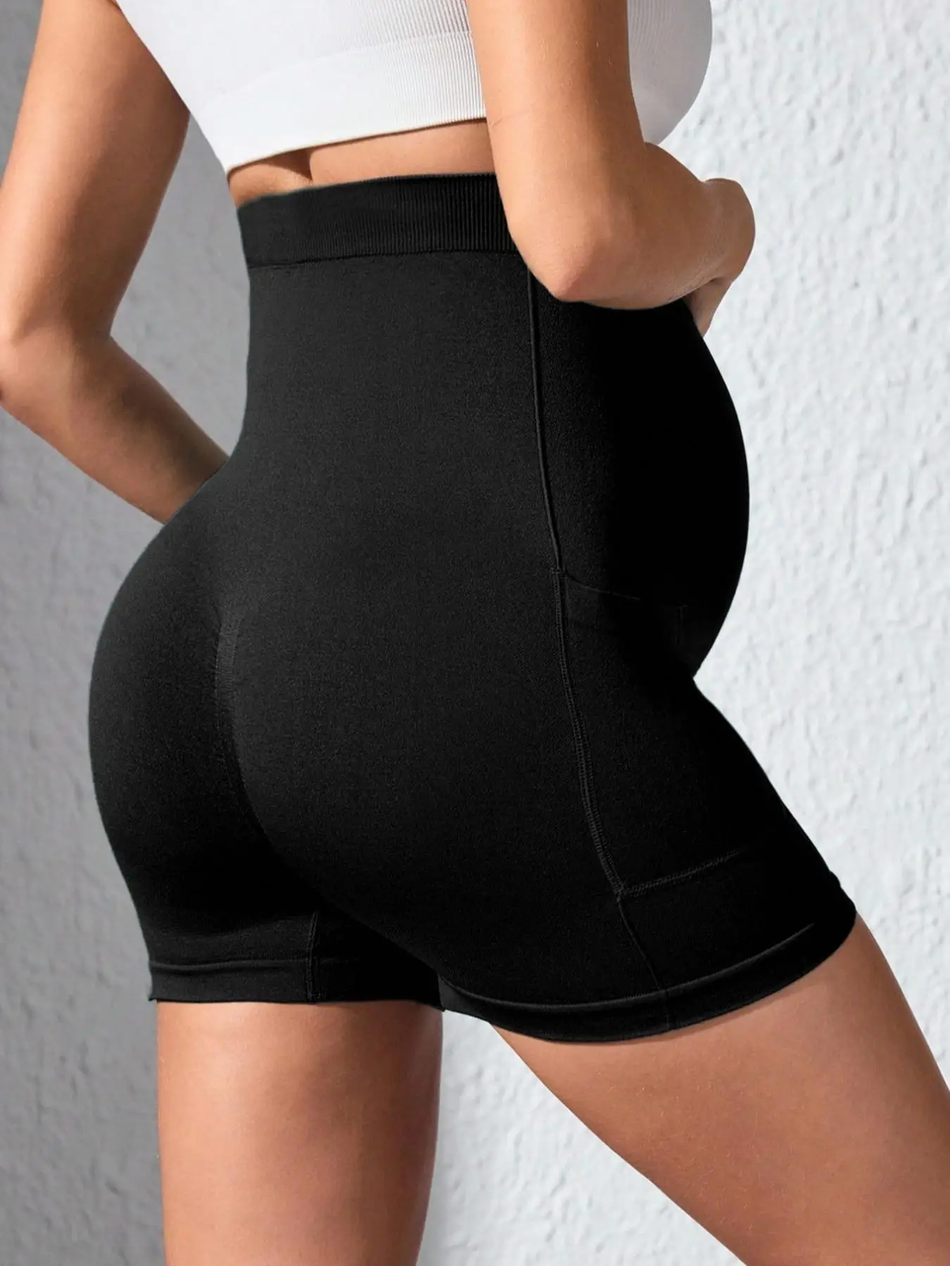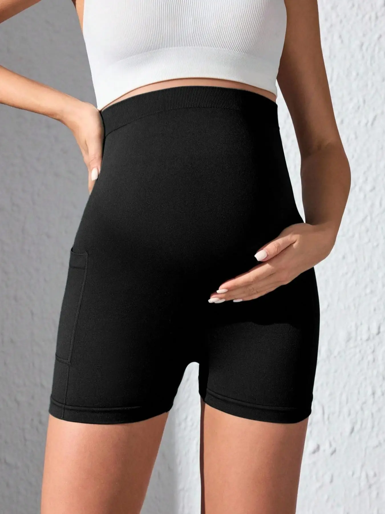 Womens Maternity Yoga Shorts With Pocket
